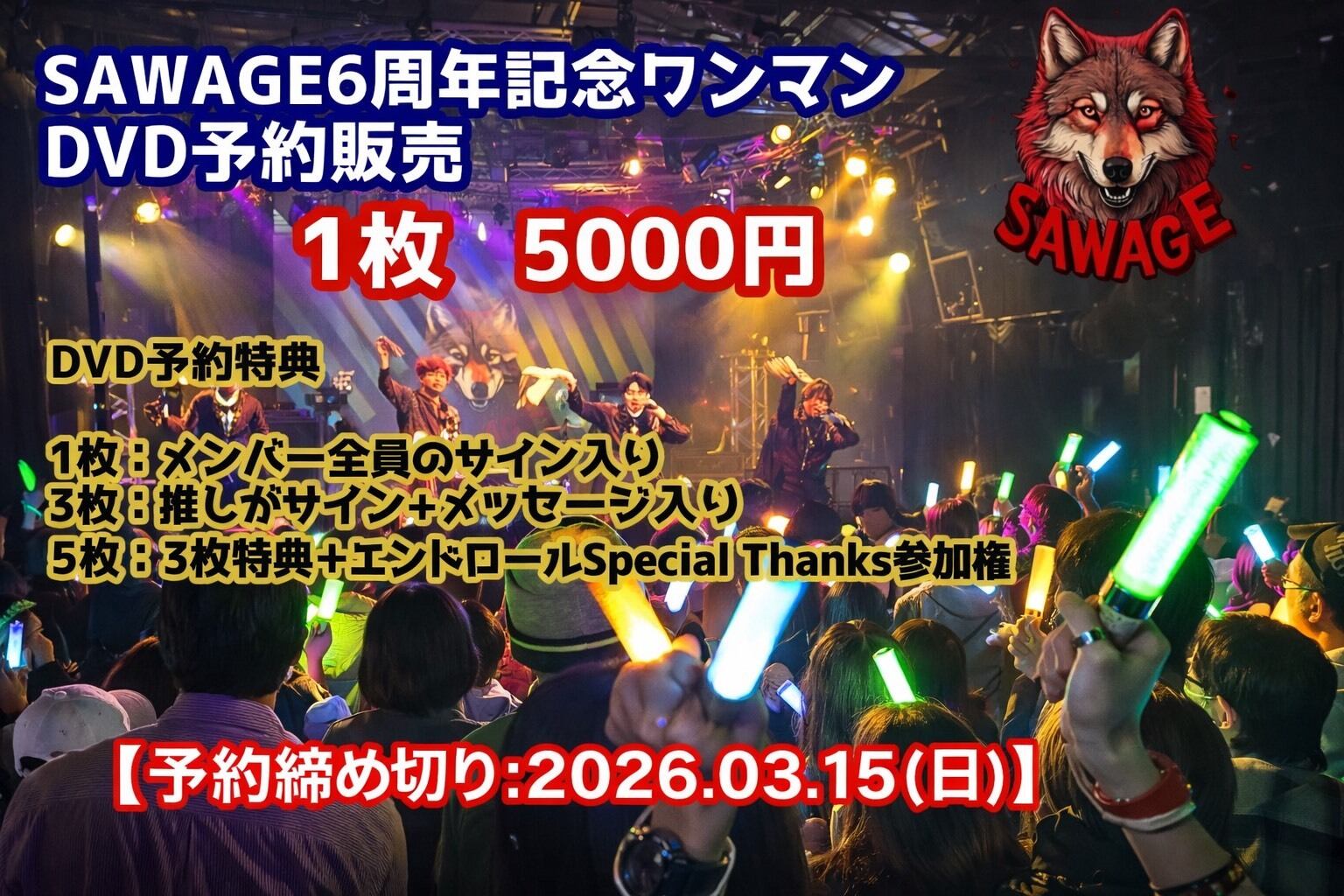 【SAWAGE 6周年記念ワンマンライブDVD予約受付】